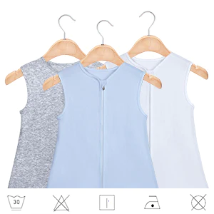 The baby sleep sack set comes with 3 pack of difference color (Blue, Grey, White). These unisex colors suit both baby boys&girls well. And 3 pack baby sleep sacks make it easier for you to change and clean up.